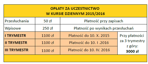 kurs dzienny – oplaty